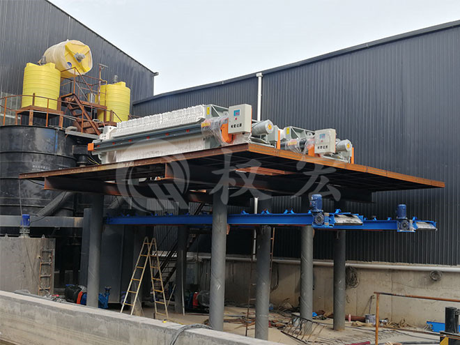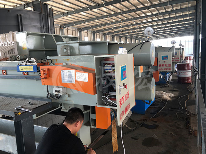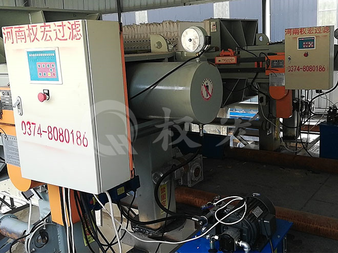 自動拉板壓濾機采用PLC控制,能對壓濾機進行各項操作(如濾板壓緊、集液板合并與開啟、拉開濾板),并留有遠程控制口,能遠程自動操作控制。 -